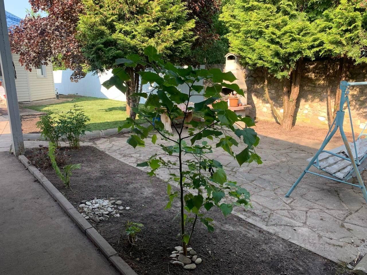 На участке есть зона барбекю, навес, хозяйственная постройка.