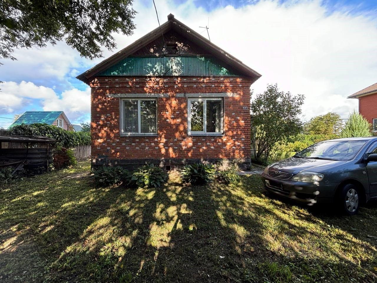 Дом построен из кирпича, фундамент блоки фбс, полы новые деревянные, потолок плиты ж/б, отопление - твердотопливный котел, электричество 15кВт, крыша шифер, вода собственный колодец 16 колец, в дом не заведена.