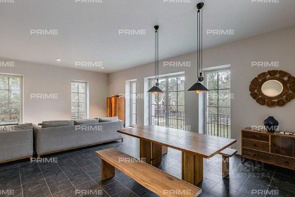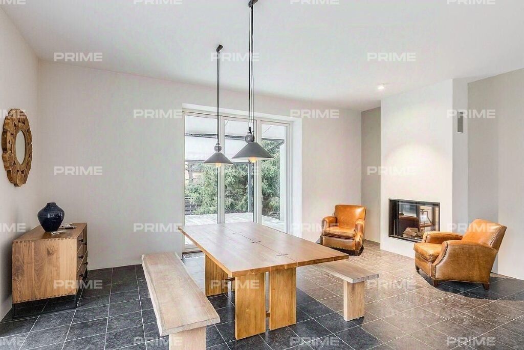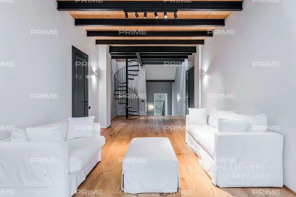 В цокольном этаже расположены рабочая кухня, ванная комната, помещение для персонала, а также места для будущей сауны и джакузи, и кладовые. На первом этаже расположены просторный холл, уютная спальня/кабинет, ванная комната с душевой кабиной, светлая столовая и гостиная с панорамными окнами и выходом на террасу, из которой открываются великолепные виды. На втором этаже находятся две спальни, каждая со своей гардеробной и ванной комнатой. Планировка Цоколь: помещение свободного назначения, квартира для персонала, санузел, сауна, гардеробная, постирочная, техническое помещение. 1 этаж: холл, столовая с выходом на террасу, гостиная с камином, кухня, спальня, санузел, душевая, гараж. 2 этаж: две спальни со своими санузлами и гардеробными, комната отдыха.