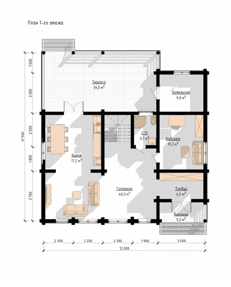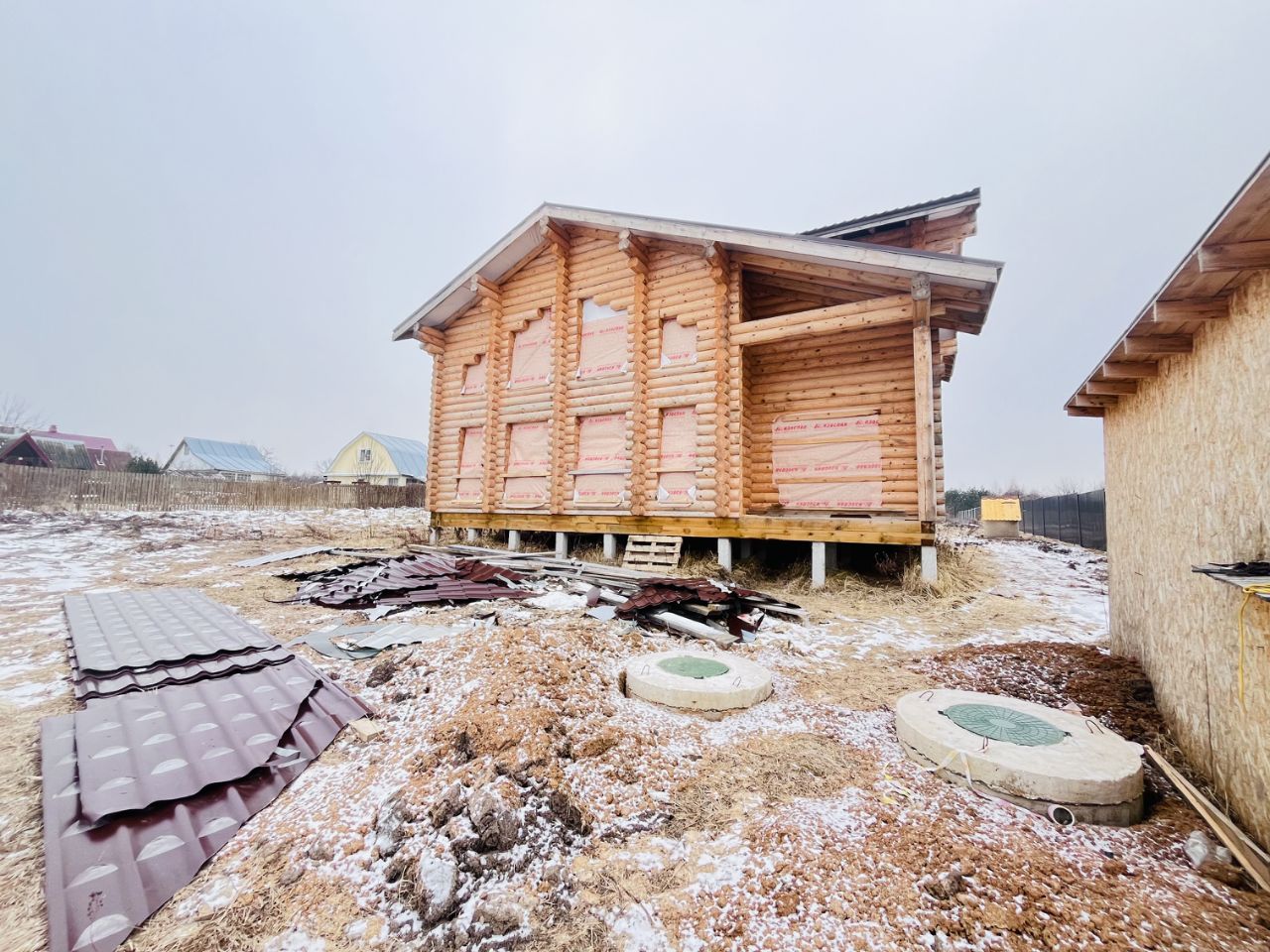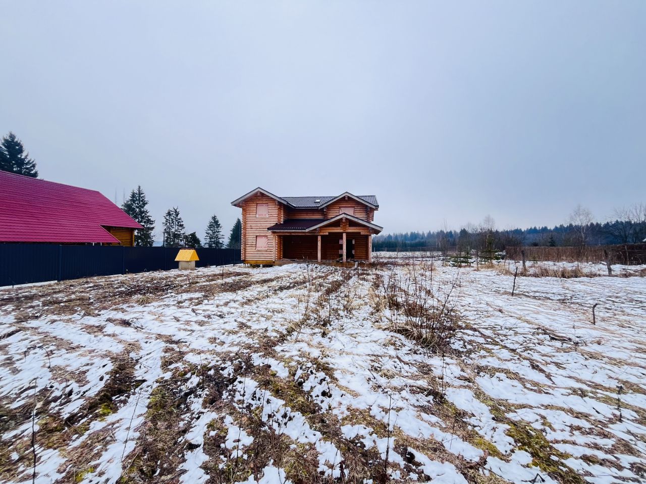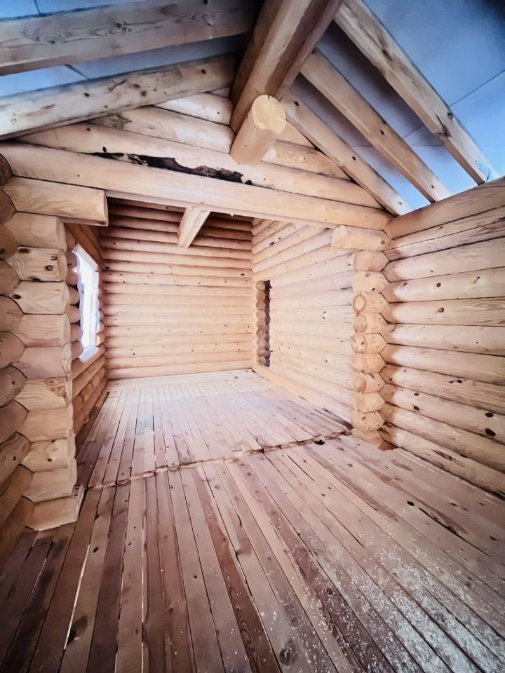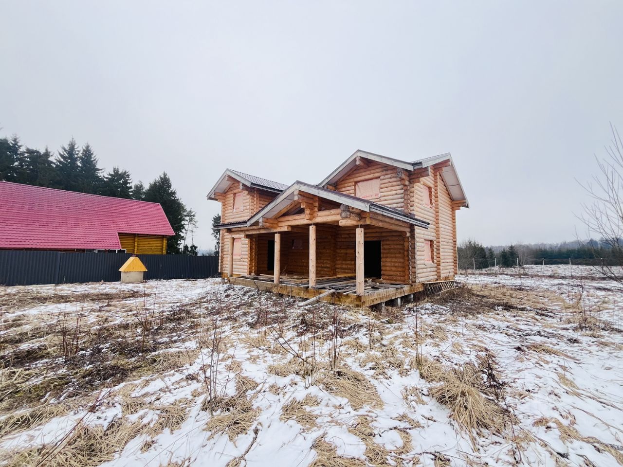 - Дом построен из оцилиндрованного бревна, диаметром 260 мм. - Улучшенный фундамент из железобетонных свай с увеличенным количеством опор до 42 шт, с сечением 200х200 мм и глубиной 4 м. Таим образом мы получили трёхкратный запас прочности по массе дома. - Полноценный второй этаж, никаих скосов в 1,2 метра возле стен! Очень высокие потолки и на первом и на втором этаже! - Огромная веранда площадью 30 м2 выходит во внутренний двор. Это самый большой дом на территории деревни!