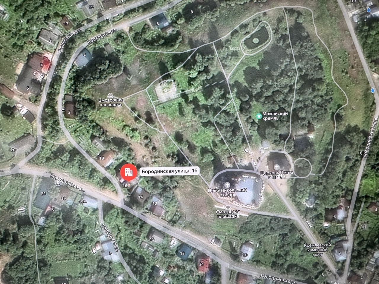 Дом расположен с видом на Никольский Собор. Река в 30 метрах, Можайское водохранилище в 5 км, автобусная остановка в 3 минутах ходьбы, ж\д станция Можайск в 15 минутах ходьбы. Хорошие и дружелюбные соседи. Рядом родник. Электричество подключено. Дом на четыре семьи. Требует капитального ремонта.
