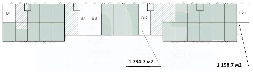Общая площадь: 3 469.4 кв. м Склад: 2 734.8 кв. м АБК: 296.6 кв. м Мезонин: 438 кв. м