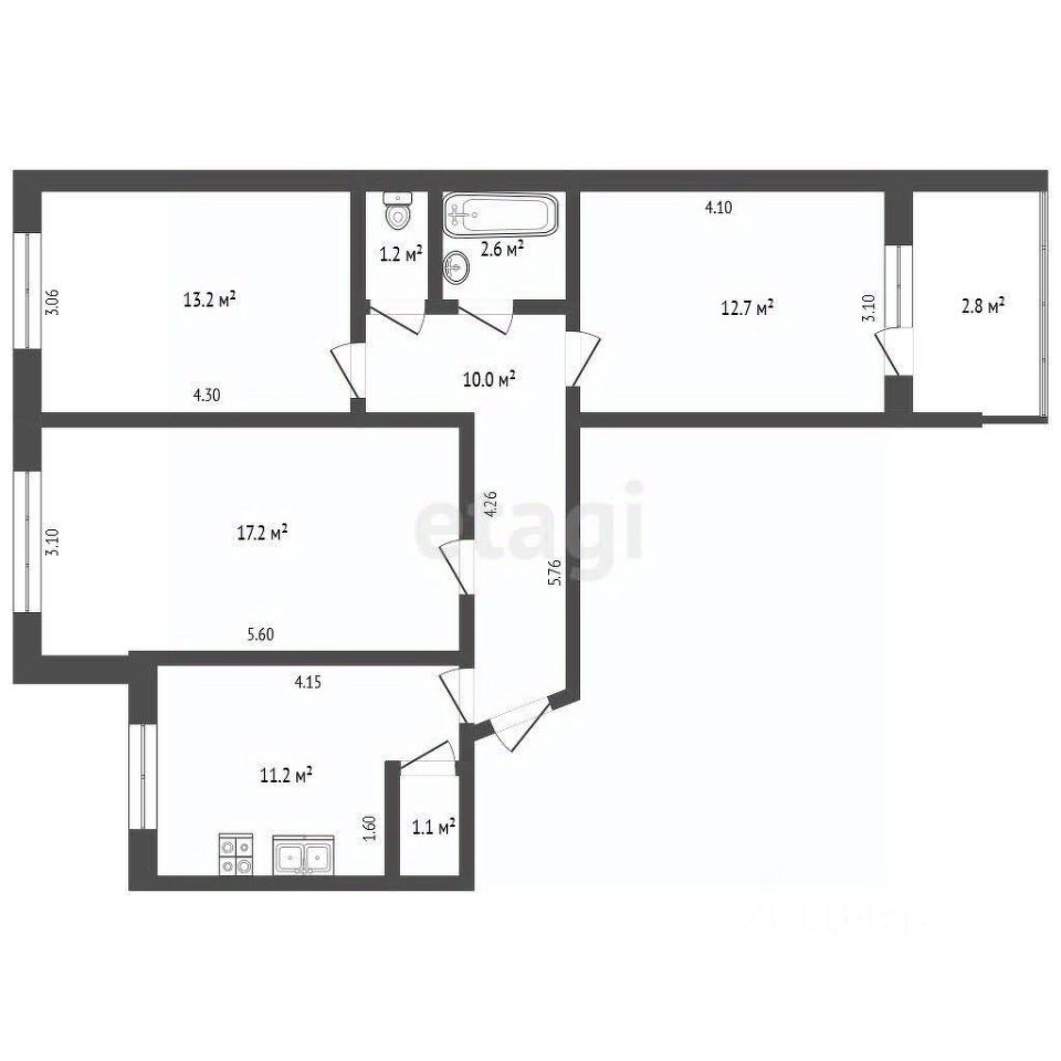 Плюсы квартиры: Большая кухня 11,2 м² — место для семейных обедов и дружеских посиделок. Раздельный санузел — комфорт для всей семьи. Балкон 2,8 м² — можно превратить в мини-сад или зону отдыха.