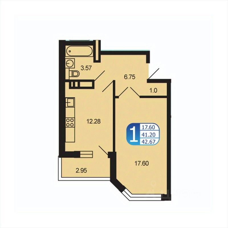 Общая площадь42,1 м2
