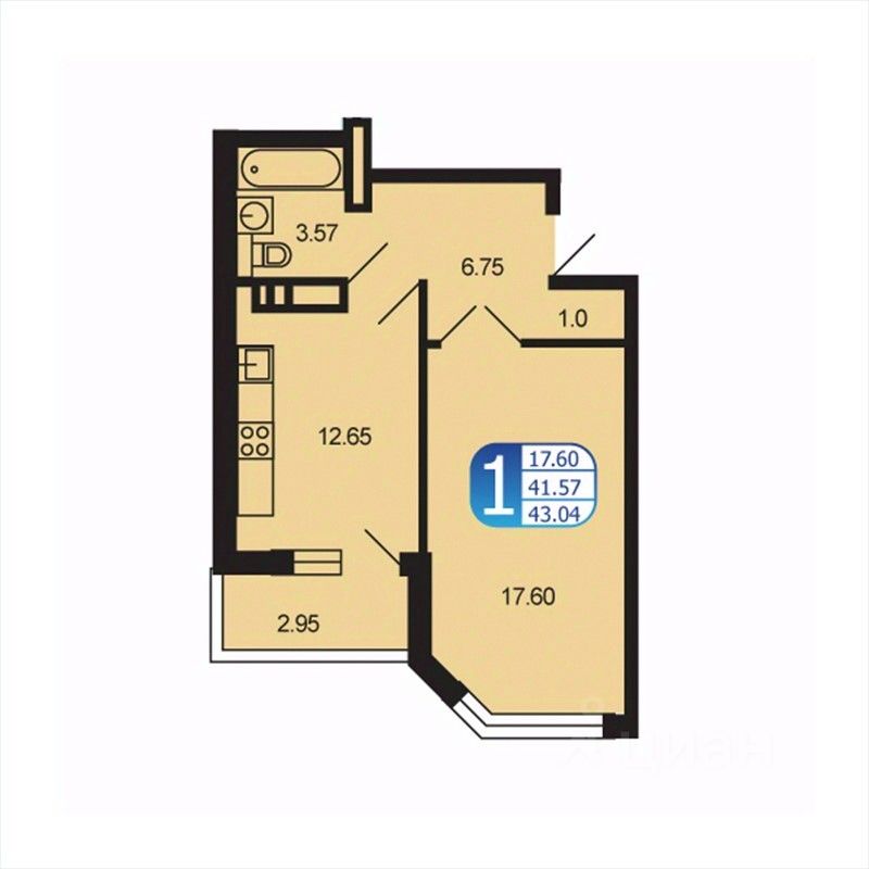 Общая площадь42,7 м2