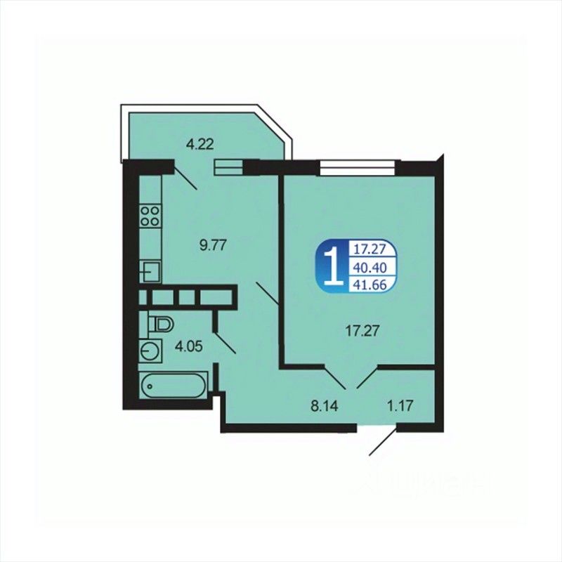 Общая площадь41,9 м2