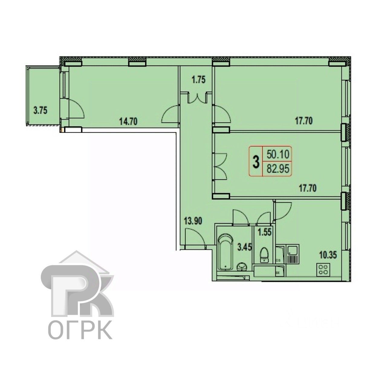 Общая площадь83,3 м2